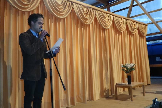 La puesta en escena tuvo lugar ante un público conformado por padres de familia, estudiantes, autoridades del colegio y con la grata presencia del cineasta ecuatoriano Patricio Burbano, quien ha desarrollado una profunda investigación sobre la vida y obra del poeta.
