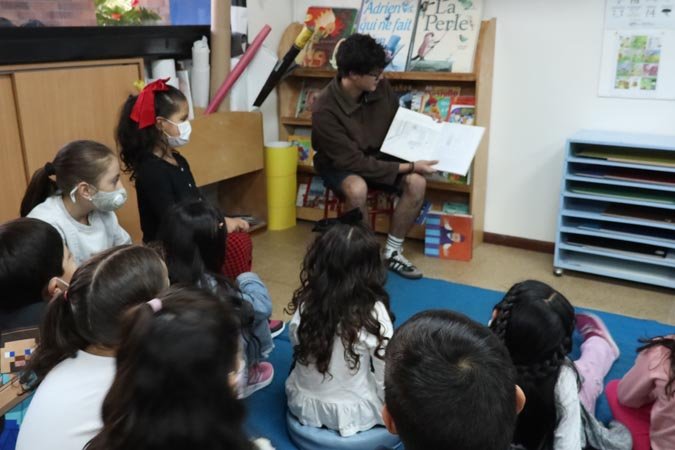 - Los alumnos de último curso leyeron cuentos en inglés a los alumnos de primaria, un momento de intercambio intergeneracional en torno a la literatura.