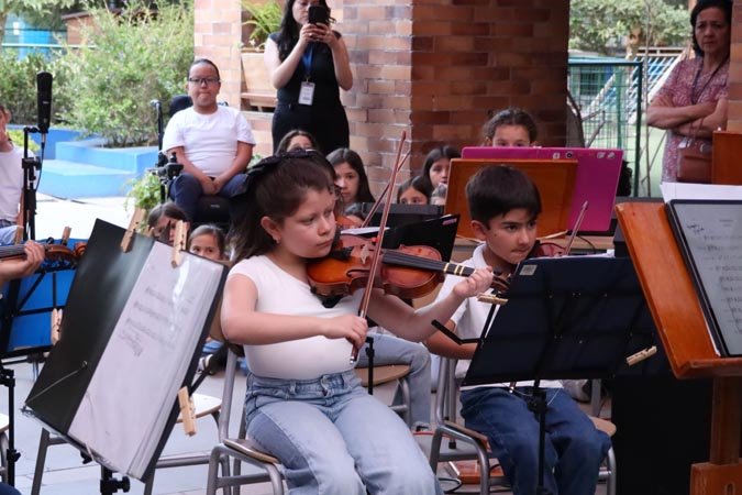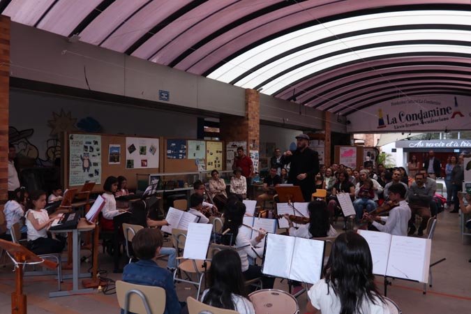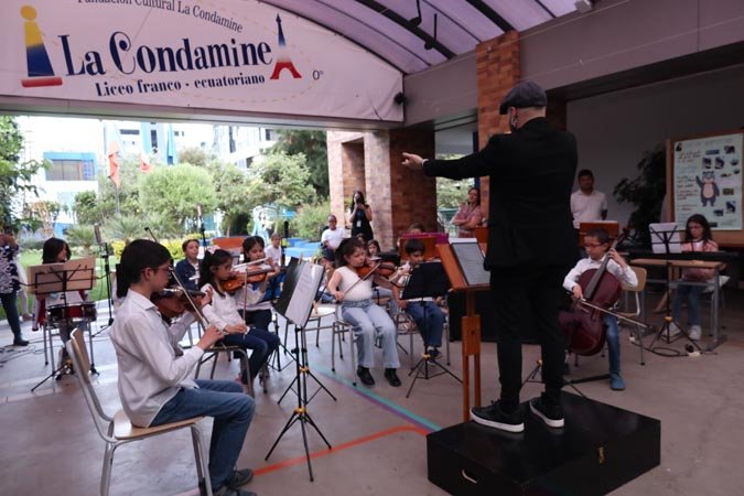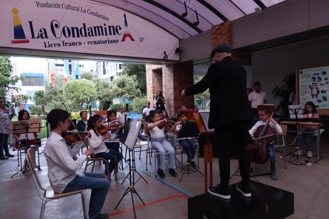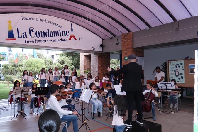 El Liceo franco-ecuatoriano La Condamine resonó con los sonidos de la Orquesta La Condamine (OSLAC) durante su concierto de clausura.