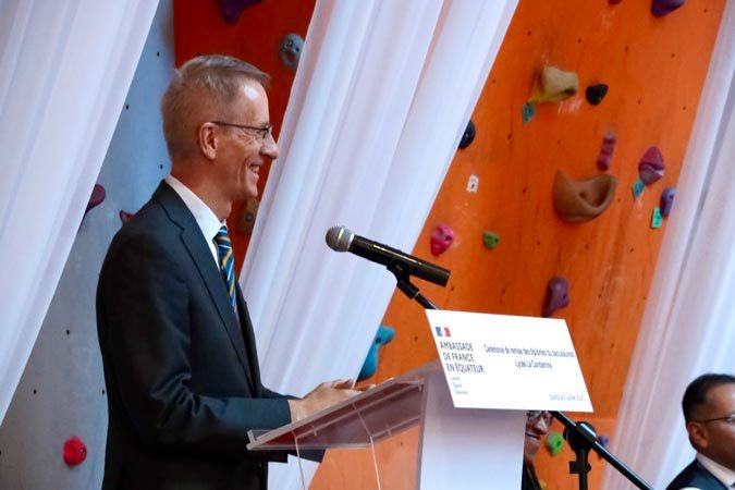 El señor Philippe Létrilliart, embajador de Francia en Ecuador, también dirigió unas palabras, en las que felicitó a las familias por haber elegido la educación francesa. Destacó que los estudiantes de esta promoción se han convertido en un verdadero puente entre Francia y Ecuador.