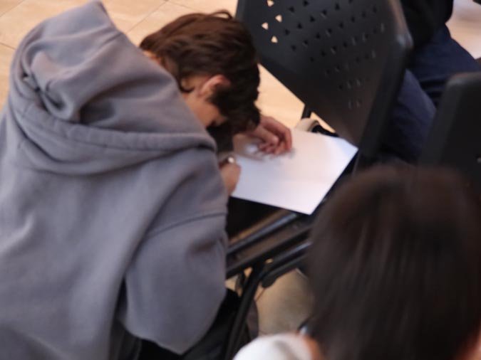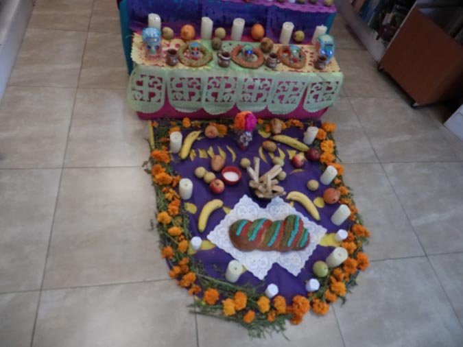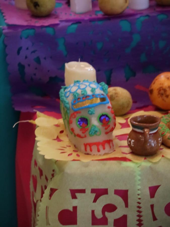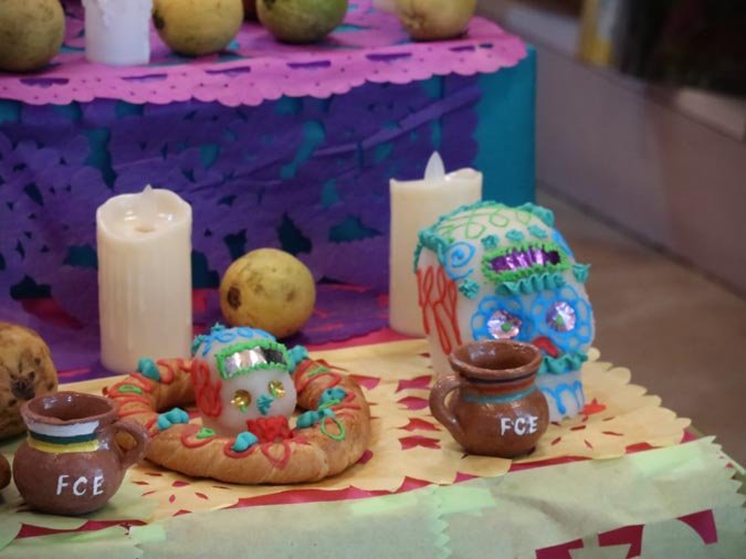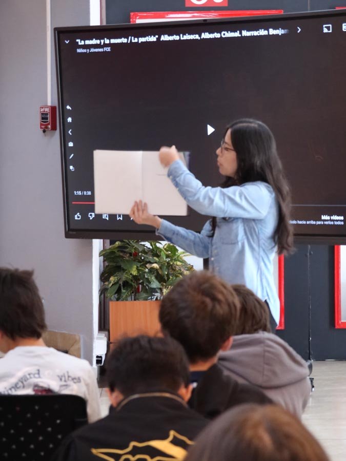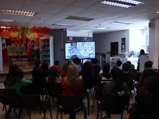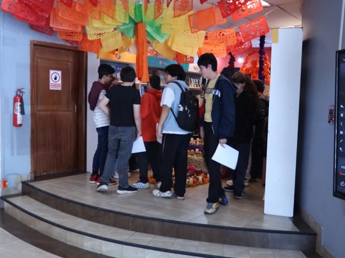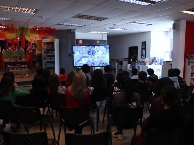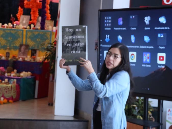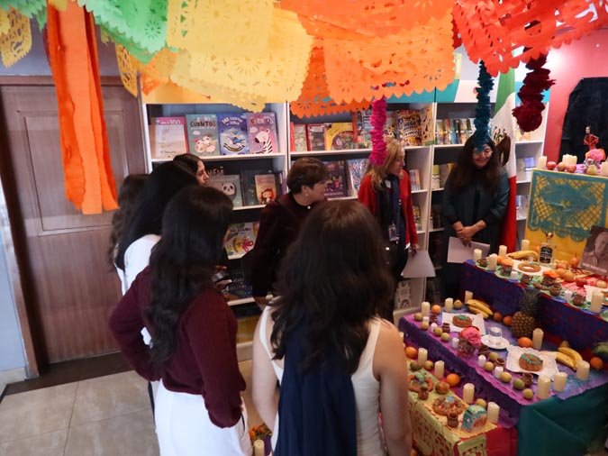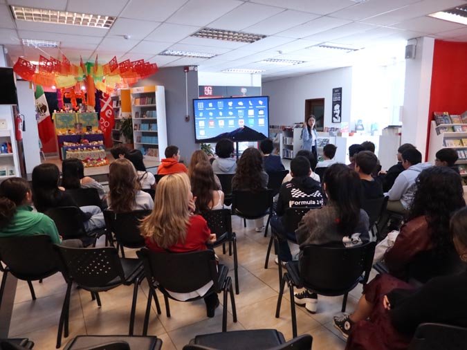 Los participantes fueron recibidos por un altar de muertos magníficamente decorado, símbolo central de esta tradición. Gracias a libros ilustrados del Fondo de Cultura Económica y a una actividad práctica, los estudiantes pudieron reflexionar sobre cómo la literatura y el arte pueden honrar los recuerdos y celebrar la vida. El taller, con una duración de 50 minutos, se caracterizó por un ambiente tanto estudioso como creativo, donde cada uno pudo expresarse y compartir sus reflexiones.