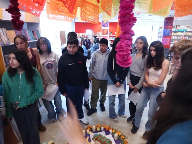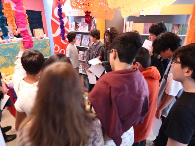 El viernes 7 de noviembre de 2025, los estudiantes del Liceo La Condamine vivieron una experiencia cultural enriquecedora en la librería Carlos Fuentes. Titulado « Día de Muertos: luces, sombras y memoria literaria », dirigido por Carolina Bastidas, este taller permitió a los alumnos de 4º y de Terminal explorar los temas de la vida, la muerte y la memoria a través de la lectura y la creación artística.
