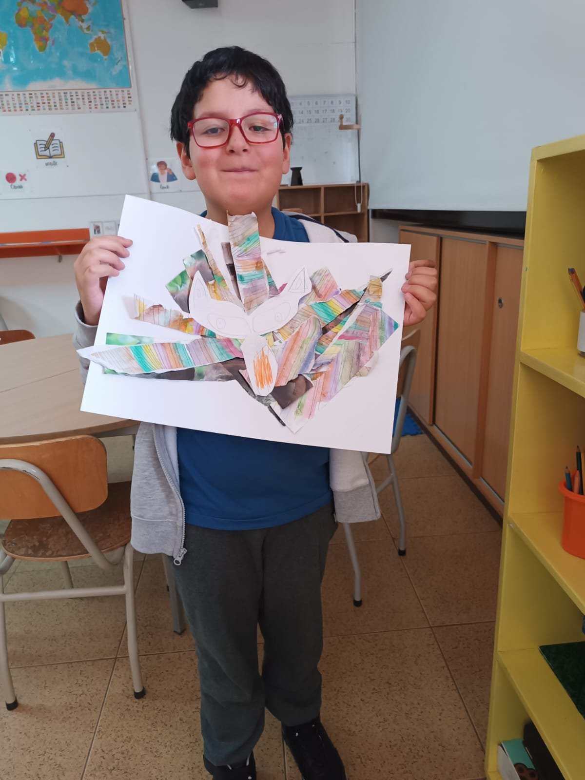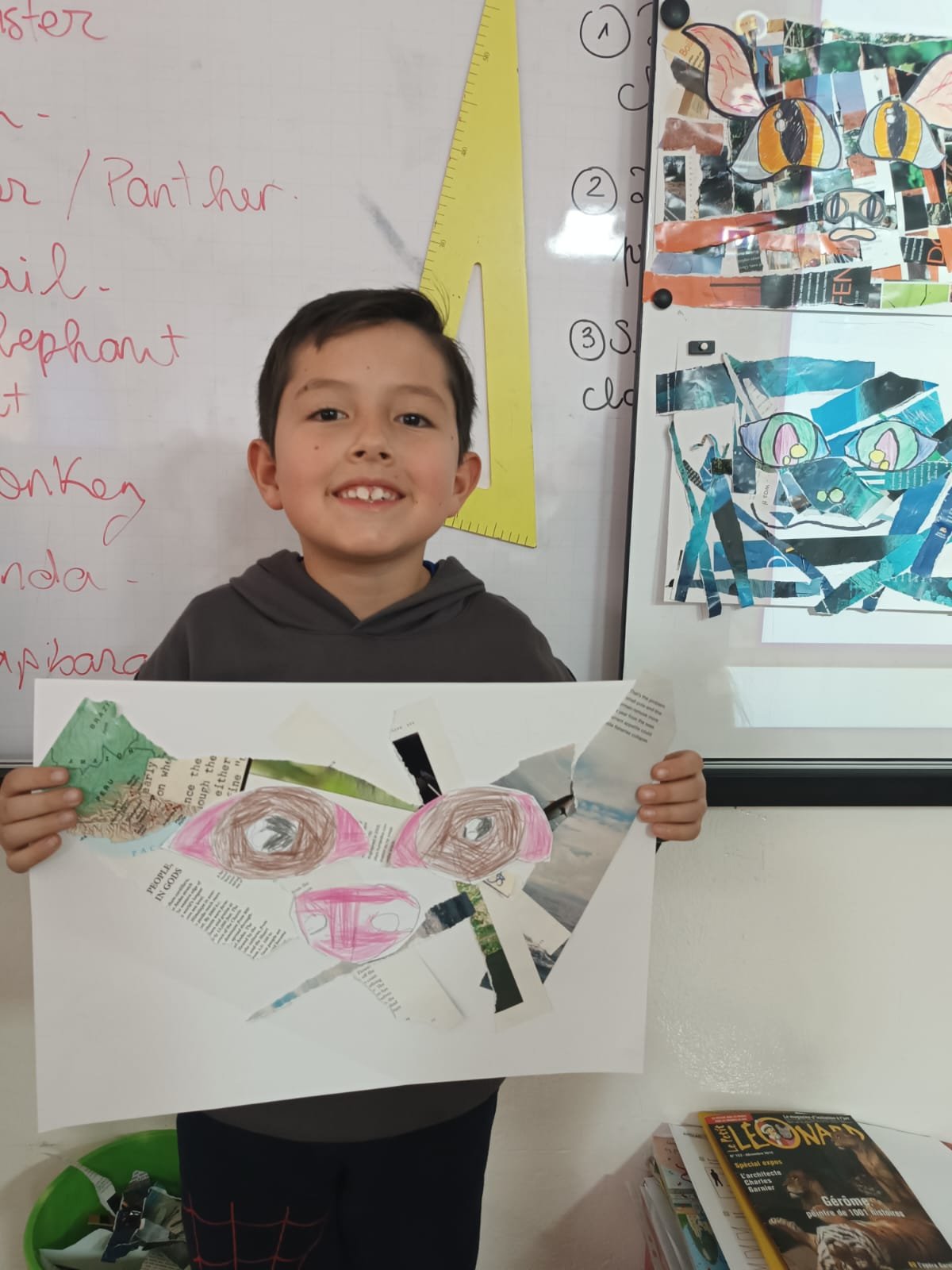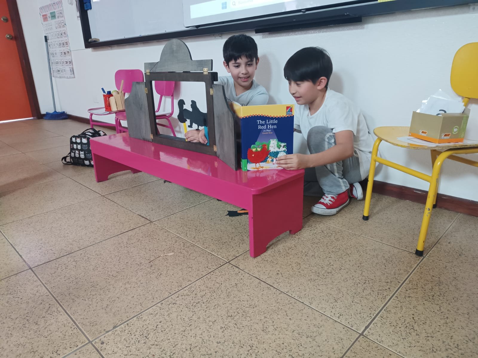 En CM1, les élèves ont travaillé autour des valeurs de bienveillance et de coopération à travers la création d’un collage et la mise en scène d’un théâtre d’ombres inspiré du conte The Little Red Hen.