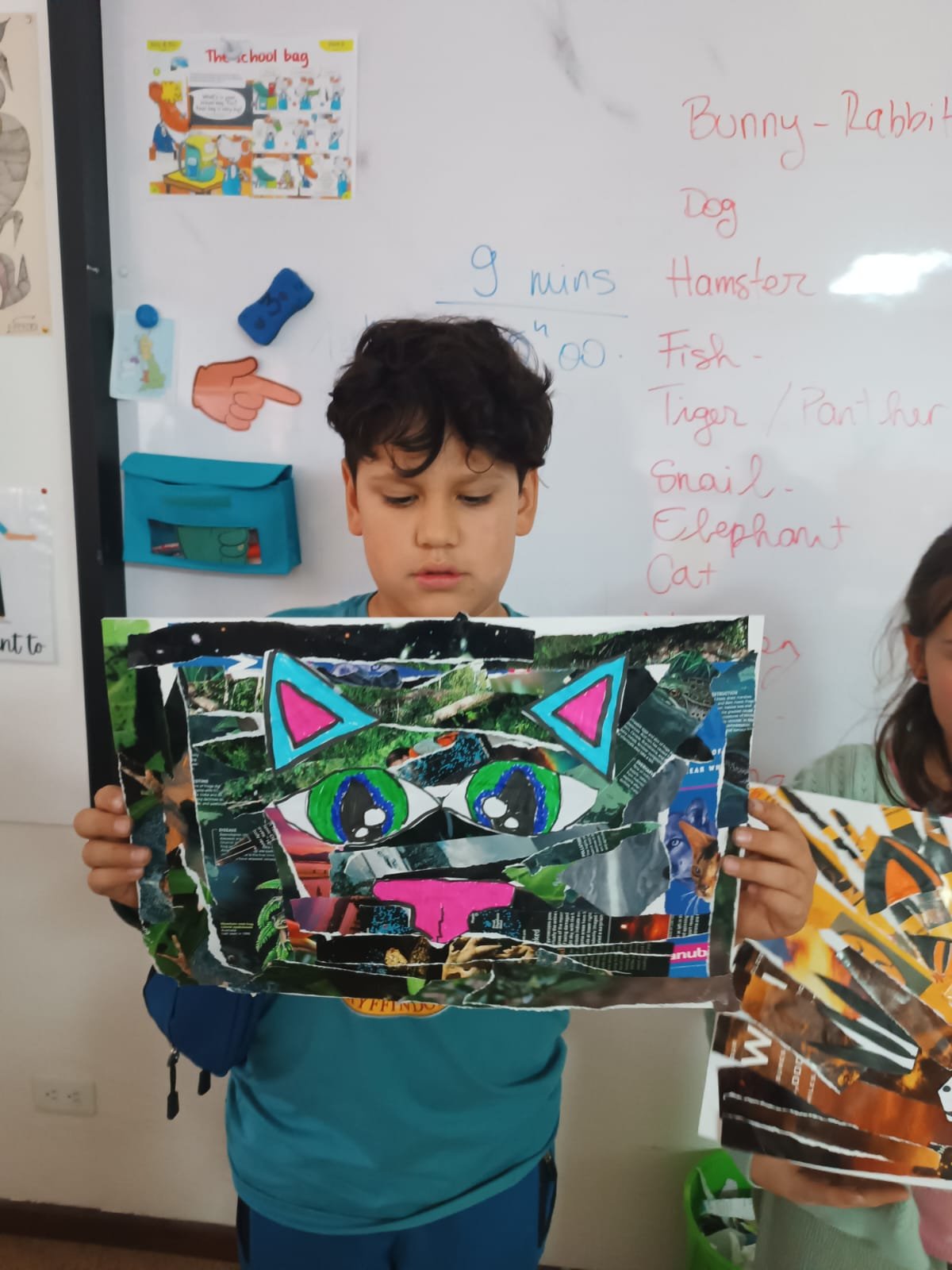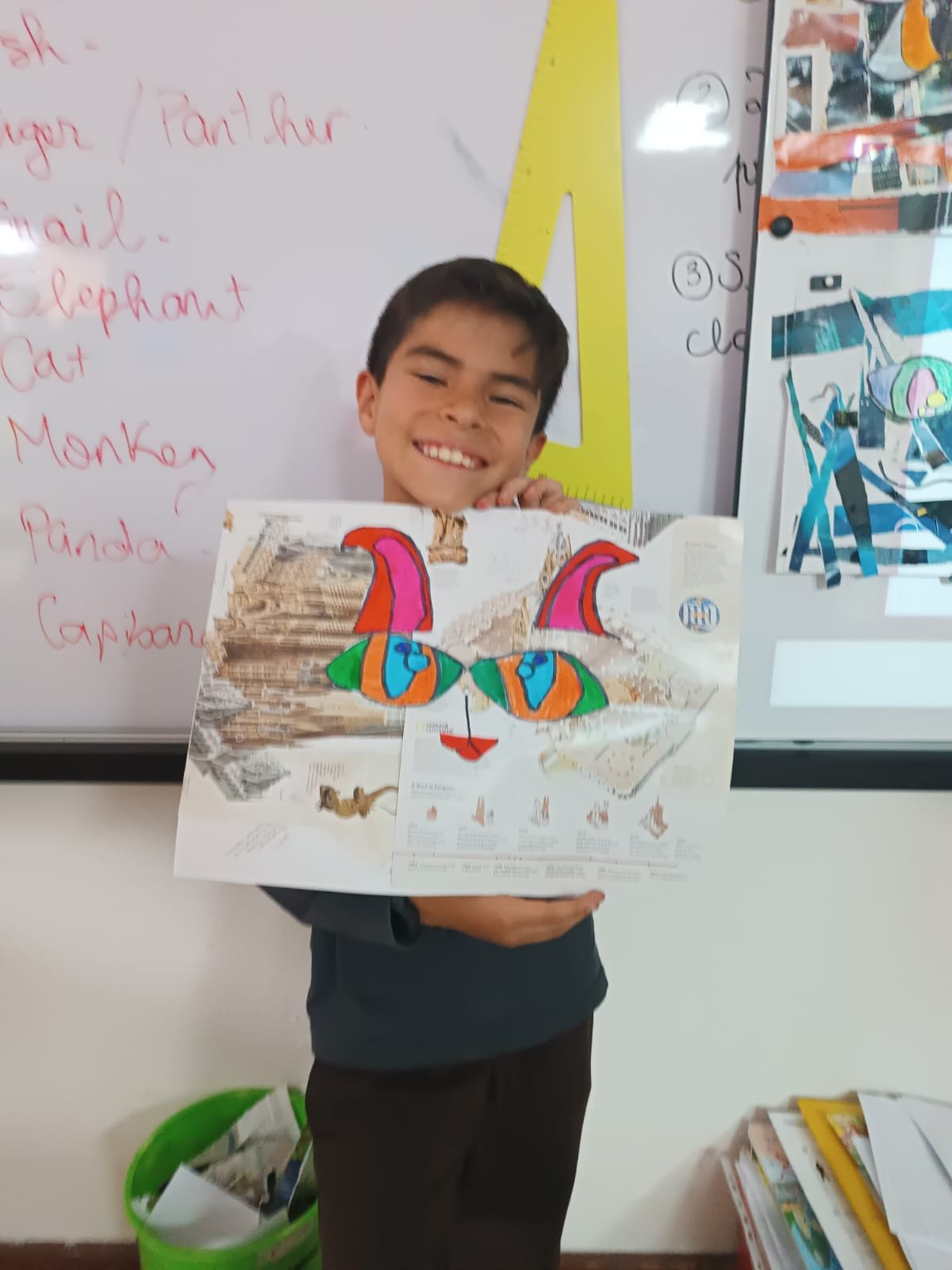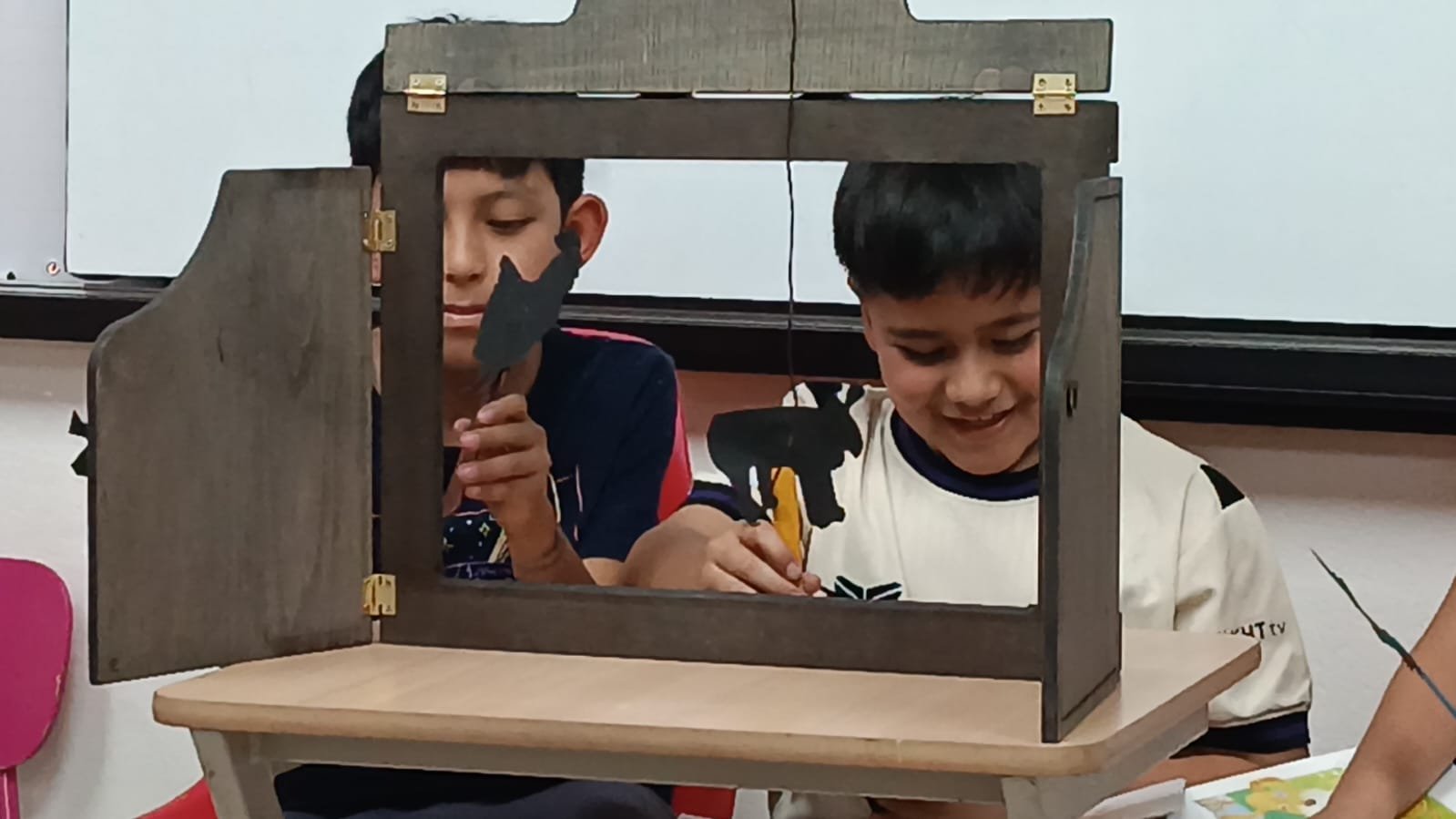 En CM1, les élèves ont travaillé autour des valeurs de bienveillance et de coopération à travers la création d’un collage et la mise en scène d’un théâtre d’ombres inspiré du conte The Little Red Hen.