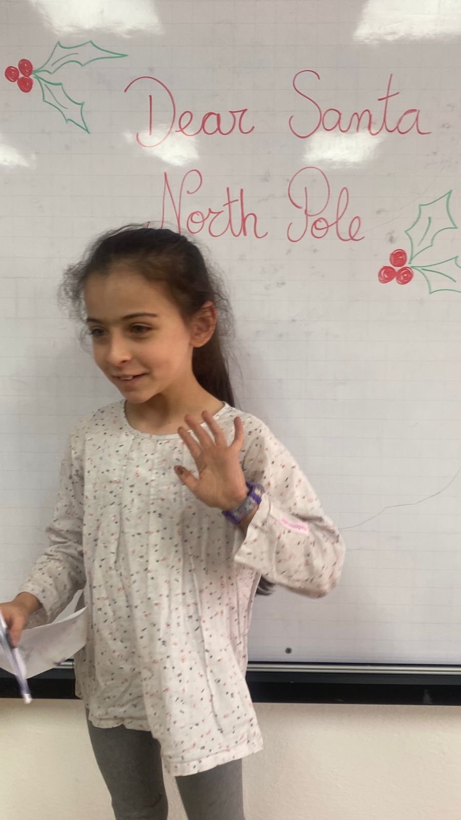 En CM2, les élèves ont préparé une chorégraphie de Noël, suivant des consignes en anglais et présentant leur danse devant d’autres classes, alliant compréhension orale, coopération et expression corporelle.