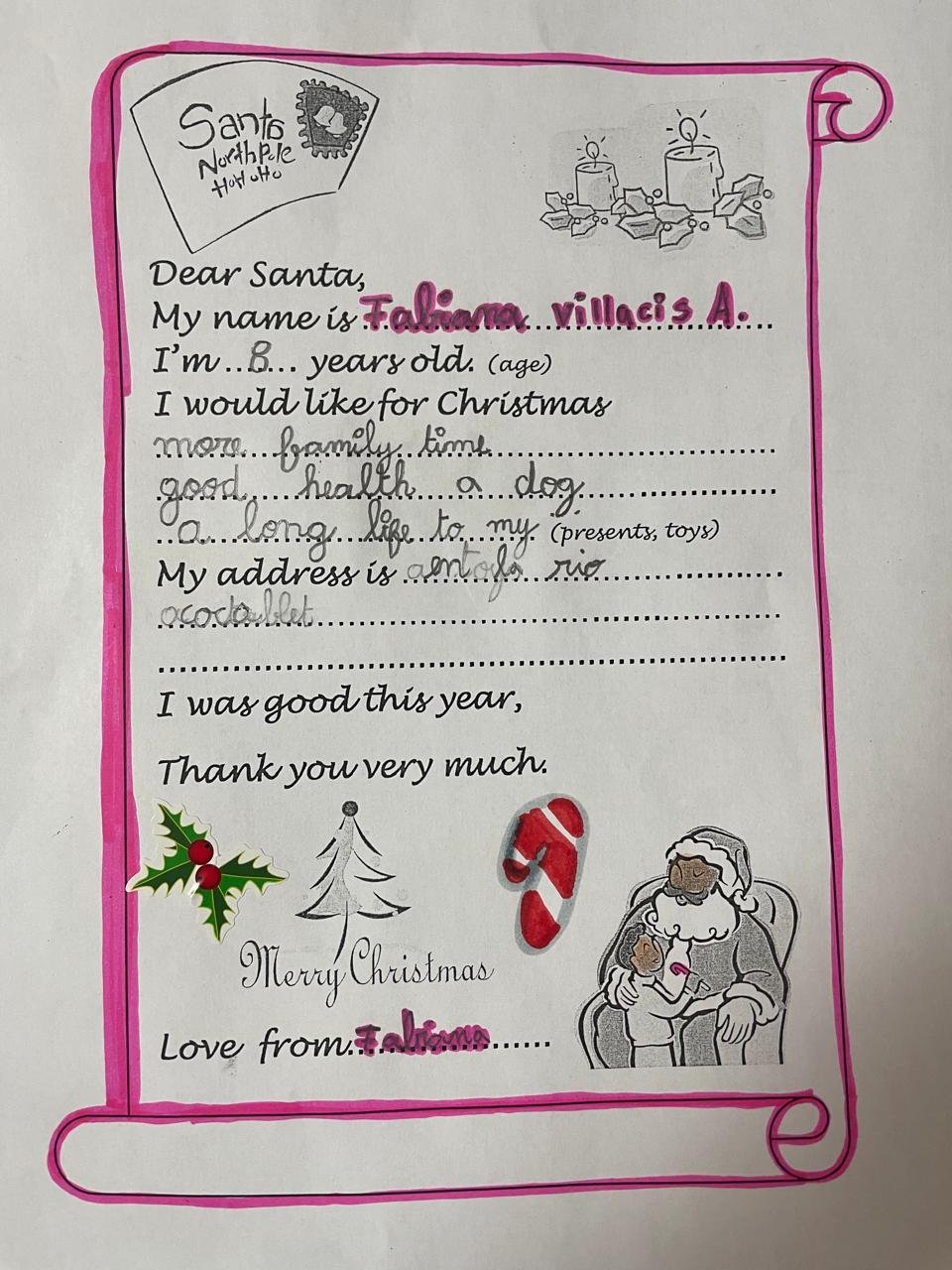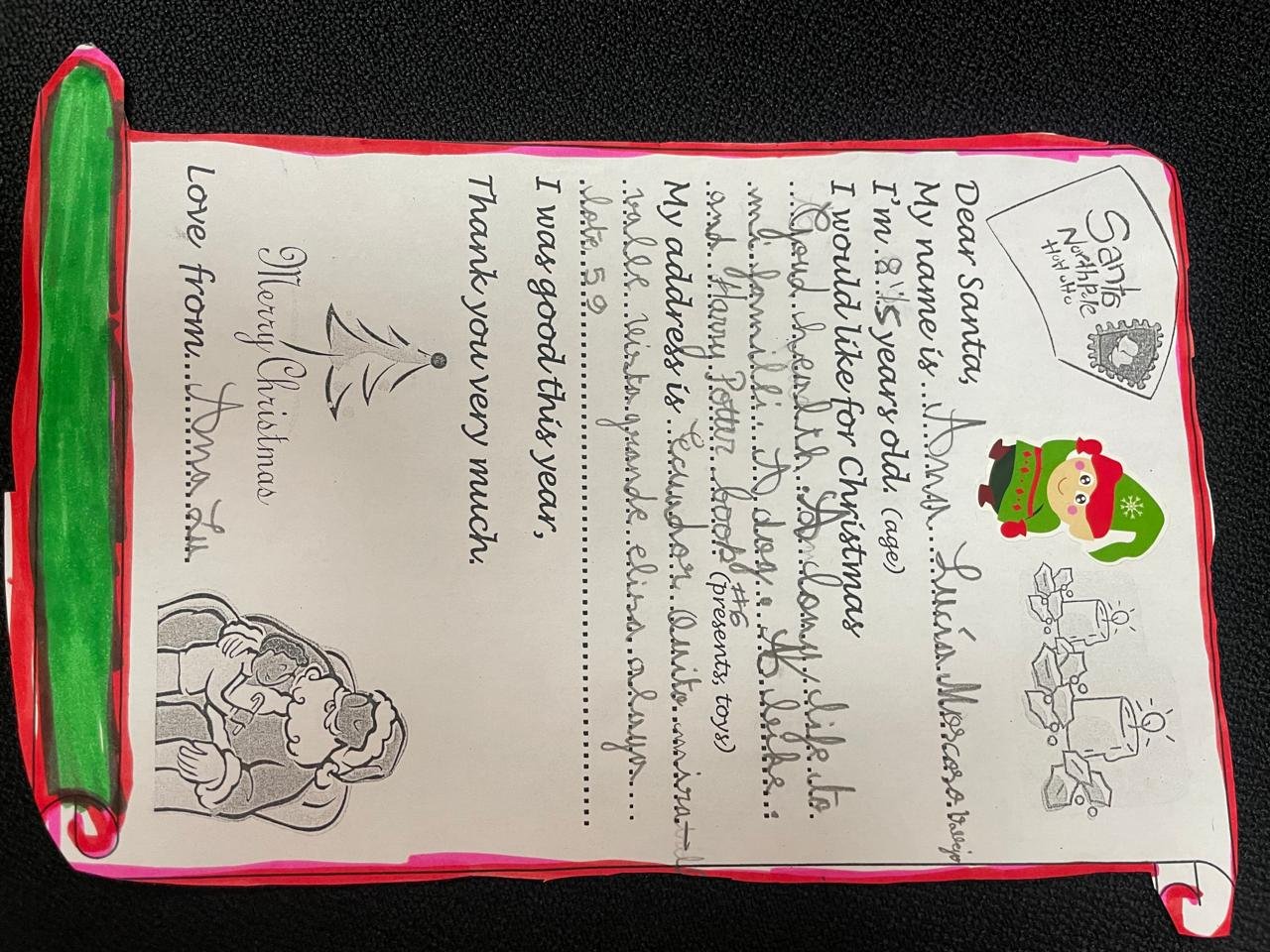 En CE2, les élèves ont conçu des cartes et des calendriers de Noël, en y intégrant des messages simples en anglais, favorisant ainsi l’expression écrite.