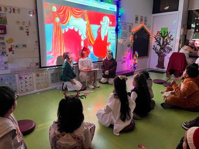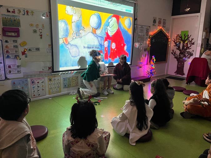 Pour les plus jeunes, la Nuit des Contes a été un moment d’évasion et de rêve. Les professeurs des écoles élémentaires ont pris en charge cette activité, organisant des séances de lecture dans les salles de la maternelle. Les petits ont écouté avec émerveillement des histoires de Noël, créant ainsi des souvenirs chaleureux et féeriques.