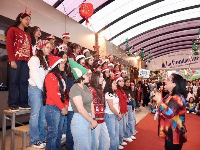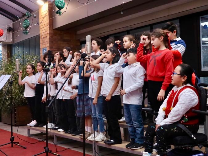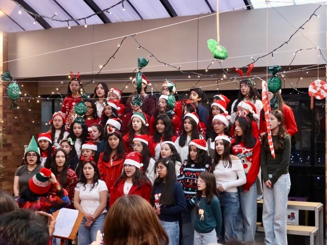 L’un des moments les plus marquants de la soirée a été le vidéomapping projeté sur la façade de la Cancha du primaire. Une expérience visuelle spectaculaire qui a ébloui les spectateurs, avec des images et des animations projetées en temps réel, donnant vie à l’esprit de Noël de manière magique et moderne. Ce show de lumière a été une parfaite illustration de la créativité et de l’innovation de l’établissement.