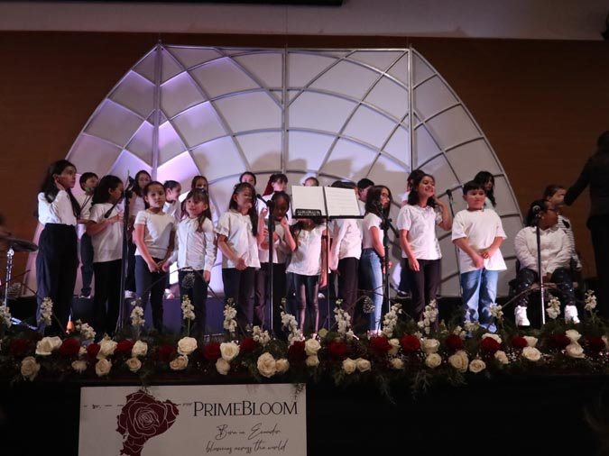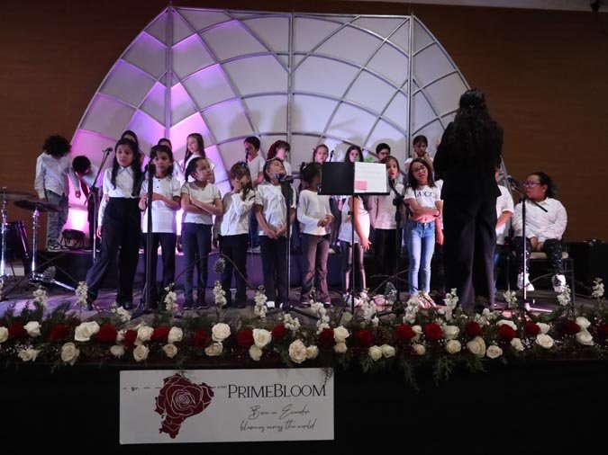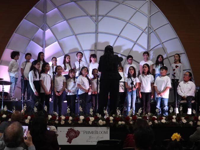 Les élèves de la chorale du primaire, dirigés par la professeure Samantha Oviedo, ont vécu un moment fort en offrant leurs premières représentations publiques lors de deux événements marquants de Quito.