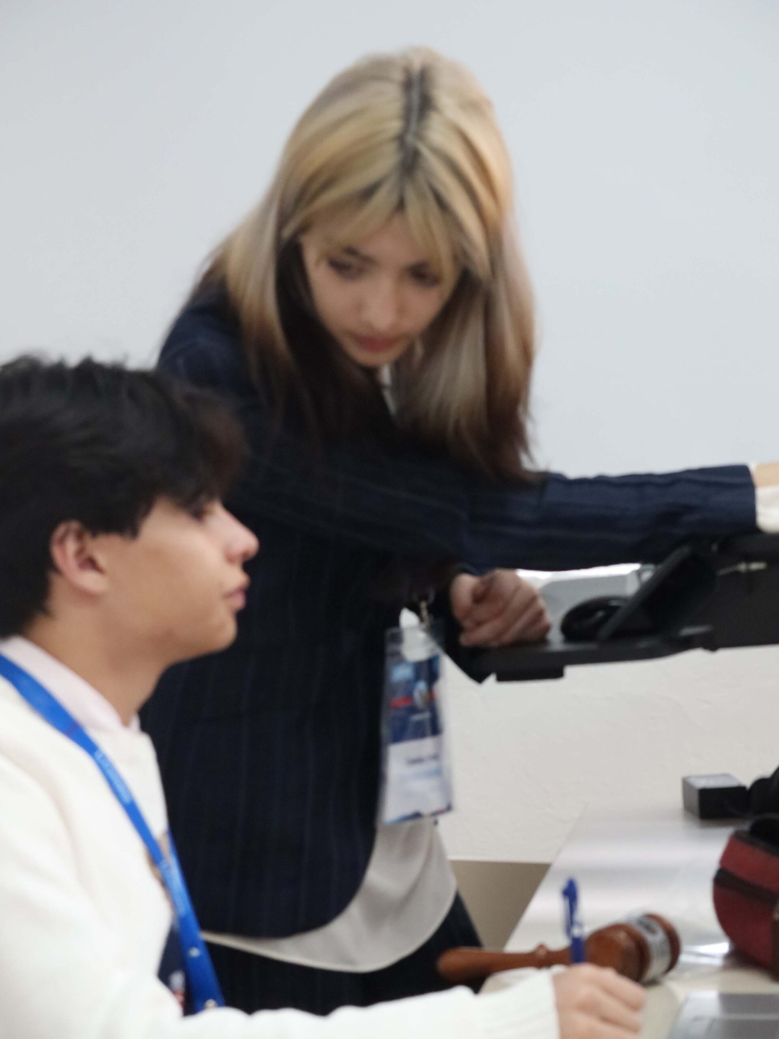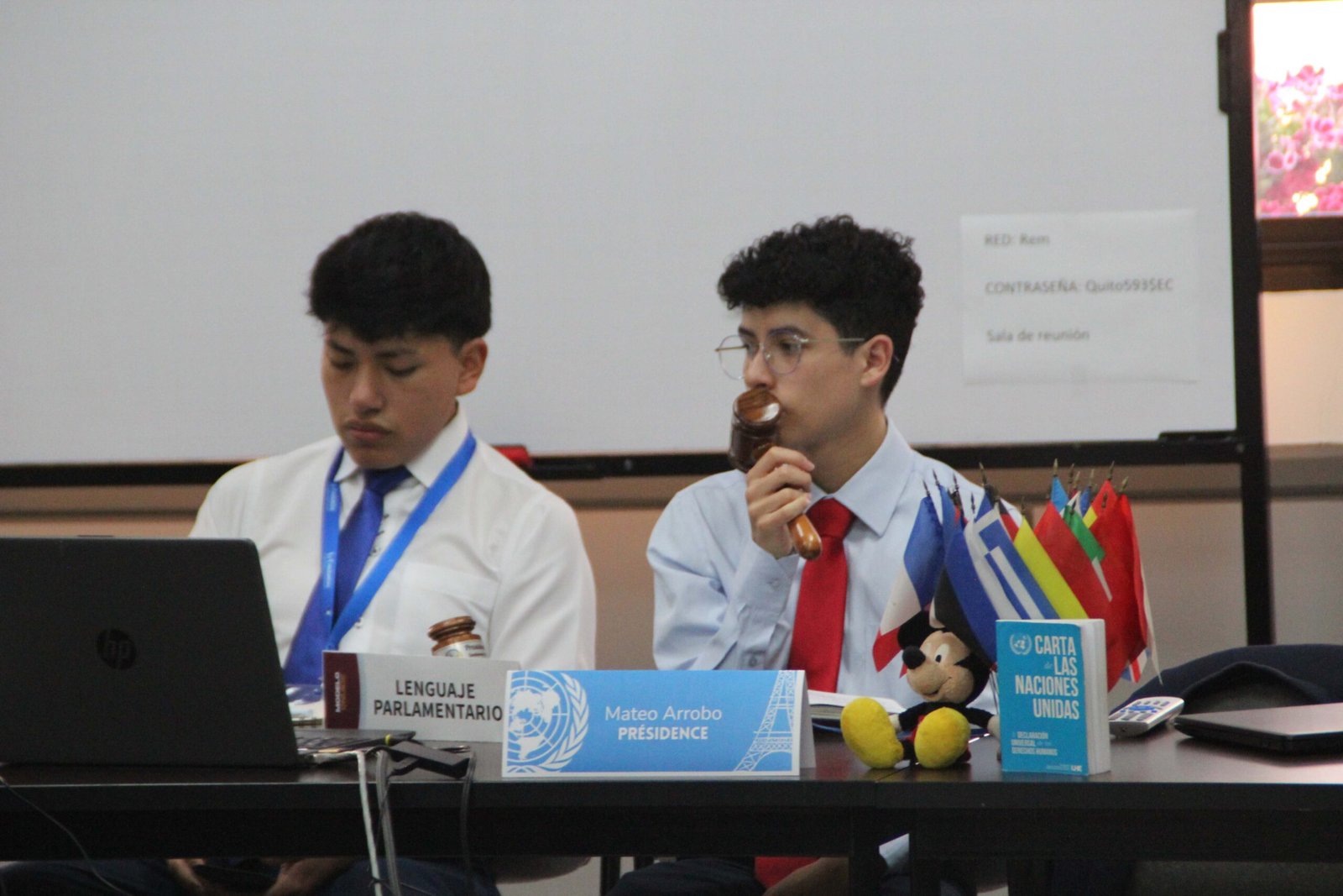 Cependant, la véritable mécanique de CONDAMONU repose avant tout sur l’engagement de ses officiers étudiants. Le duo formé par Sabina Negrete, Secrétaire Générale, et Nicole Murgueytio, Sous-Secrétaire Générale, a officiellement déclaré l’ouverture des débats. En présentant les présidences des comités, elles ont donné le coup d’envoi à des joutes oratoires intenses, où argumentation, diplomatie et esprit critique étaient à l’honneur.