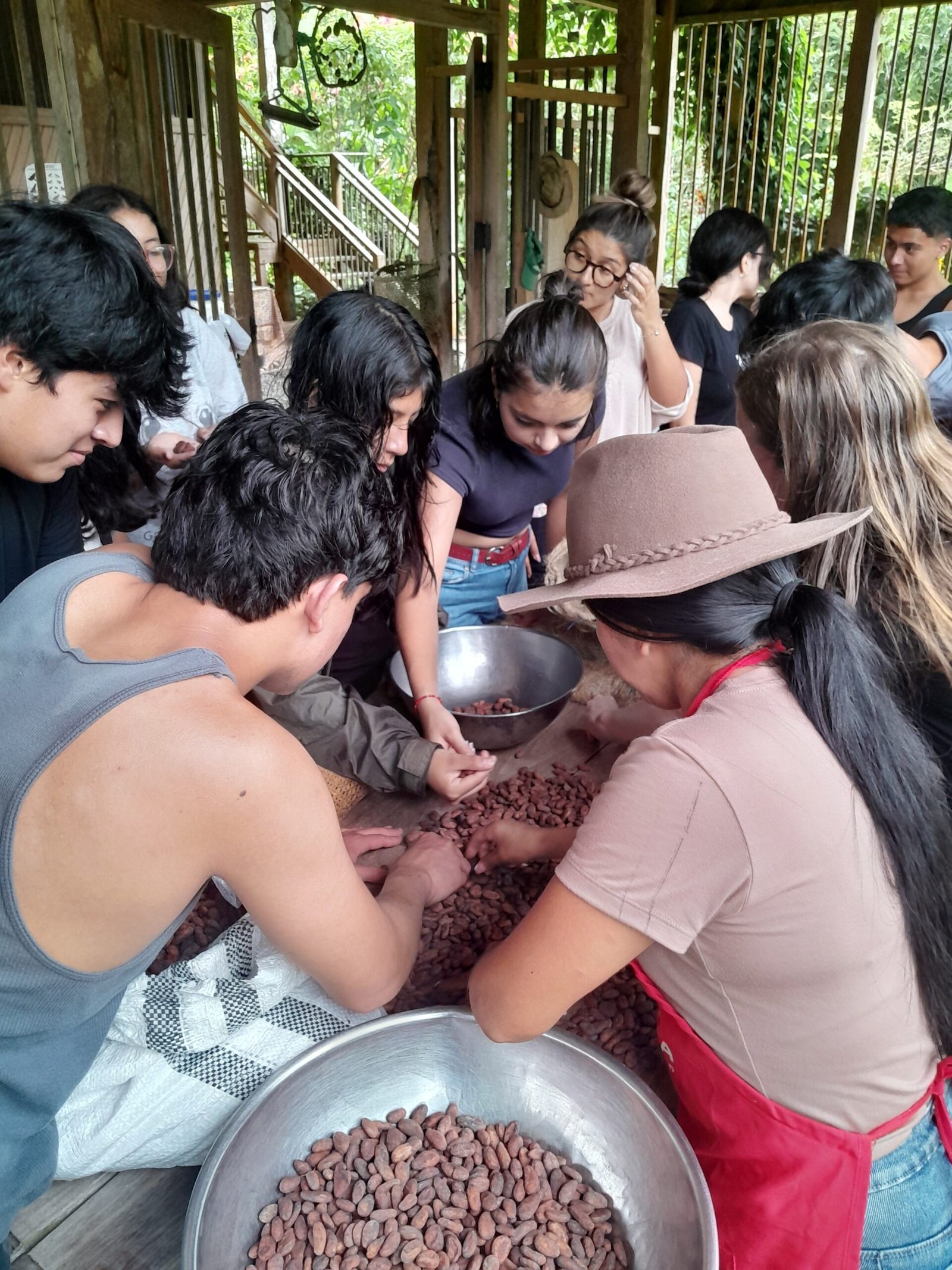 Dans la finca de cacao Suenos, ils ont découvert l’agroforesterie, participé à la reforestation en plantant des arbres et suivi les étapes de transformation du cacao, de la plante jusqu’à la dégustation.