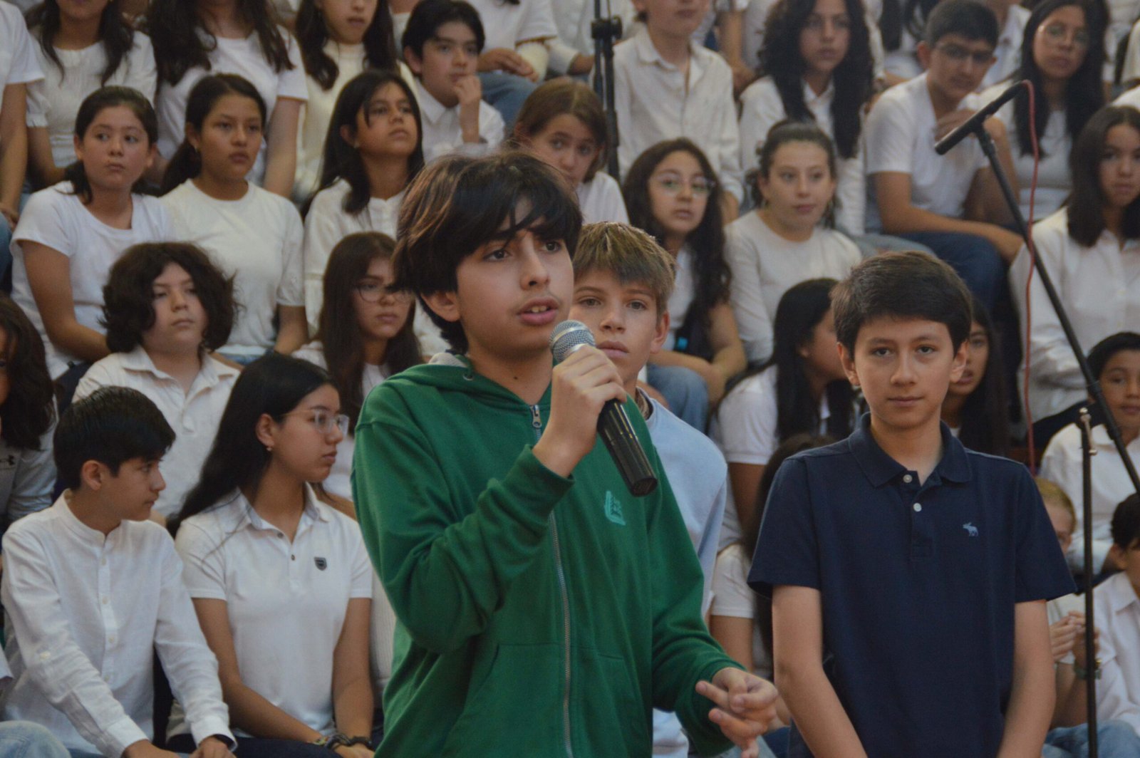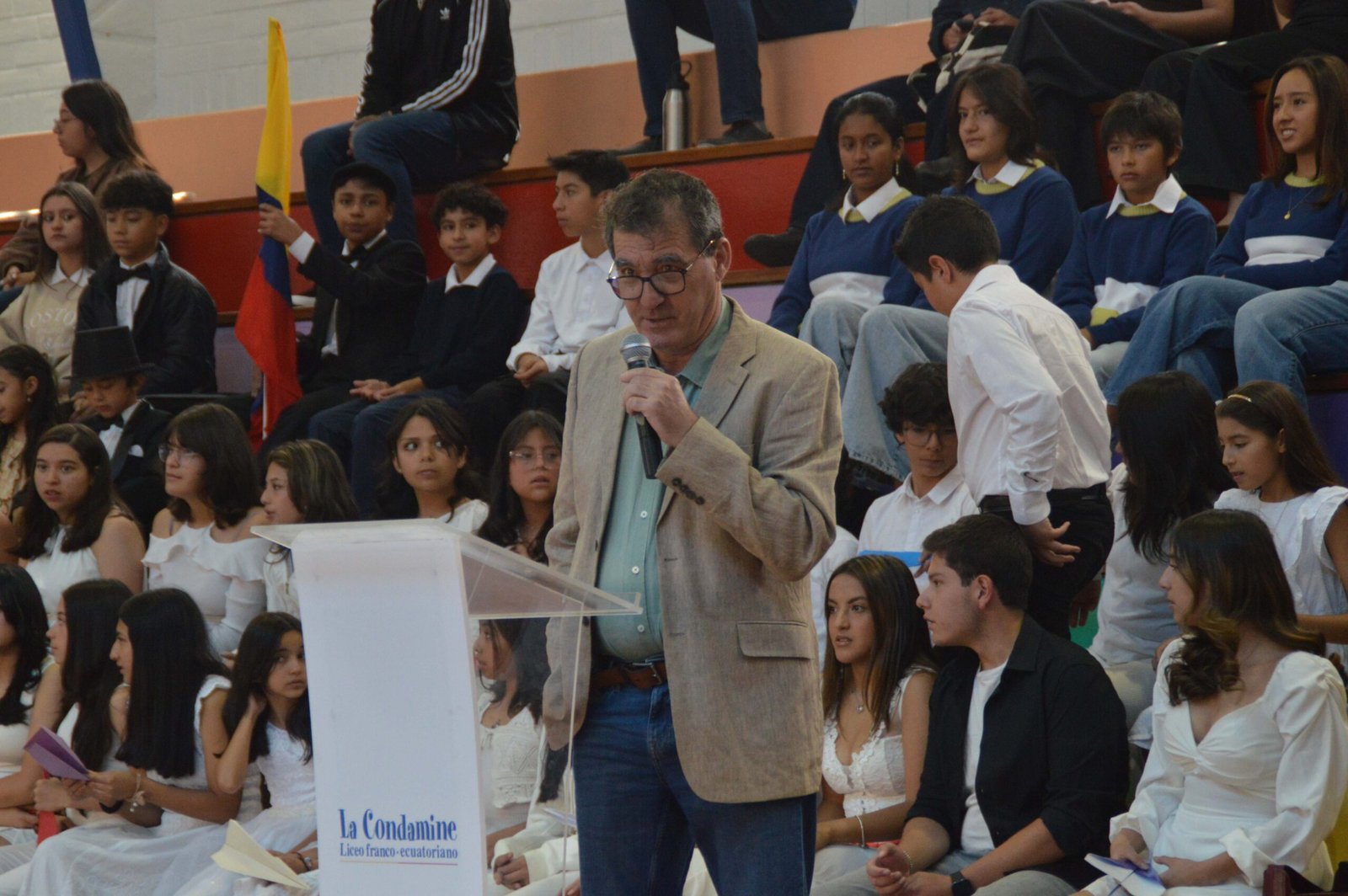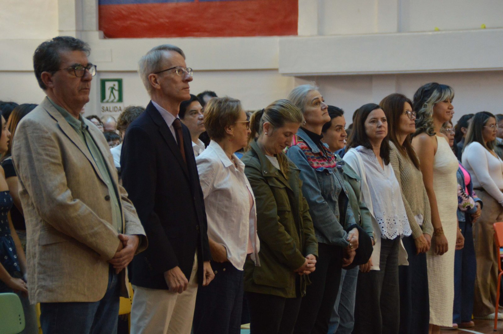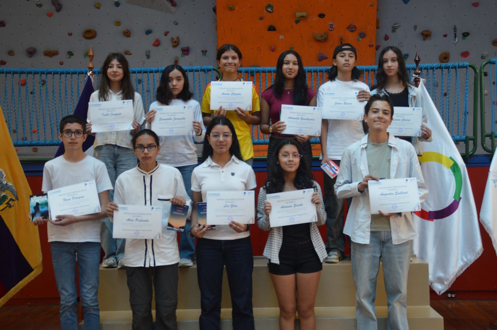 La célébration a débuté par une magnifique ouverture assurée par la chorale des élèves de 6ème et 5ème, qui ont accompagné la cérémonie de remise des diplômes du concours de dictée en français. Ce concours a réuni des élèves de plusieurs établissements, notamment le Liceo Campo Verde, le Colegio Francés et le Colegio Jean-Jacques Rousseau, renforçant les liens entre les écoles et valorisant la langue française.
