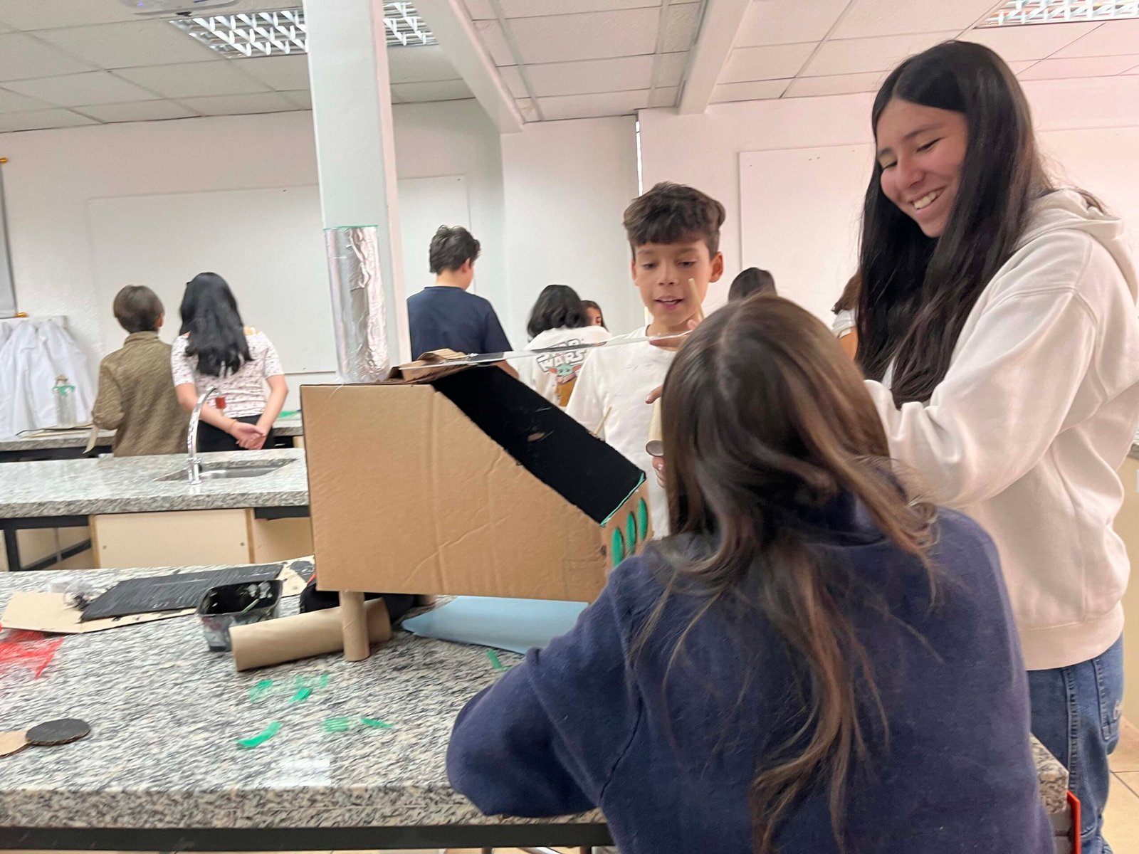La dernière étape consiste en la fabrication d’un prototype en carton, que les élèves pourront tester afin d’évaluer son efficacité. Cette phase expérimentale leur permet de confronter leurs idées à la réalité, d’identifier d’éventuelles améliorations et de mieux comprendre les contraintes techniques.
