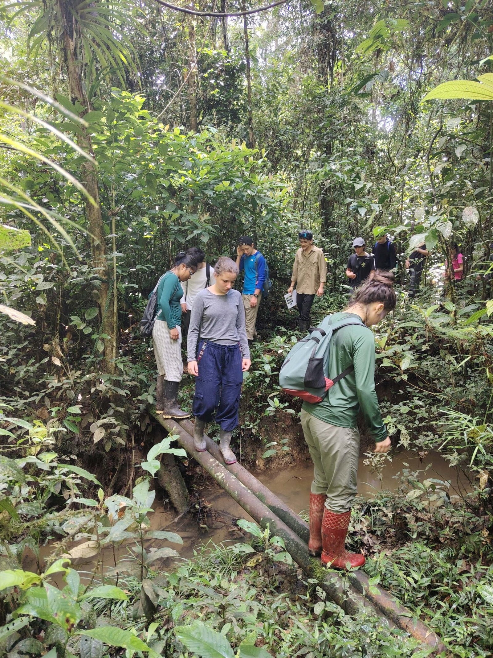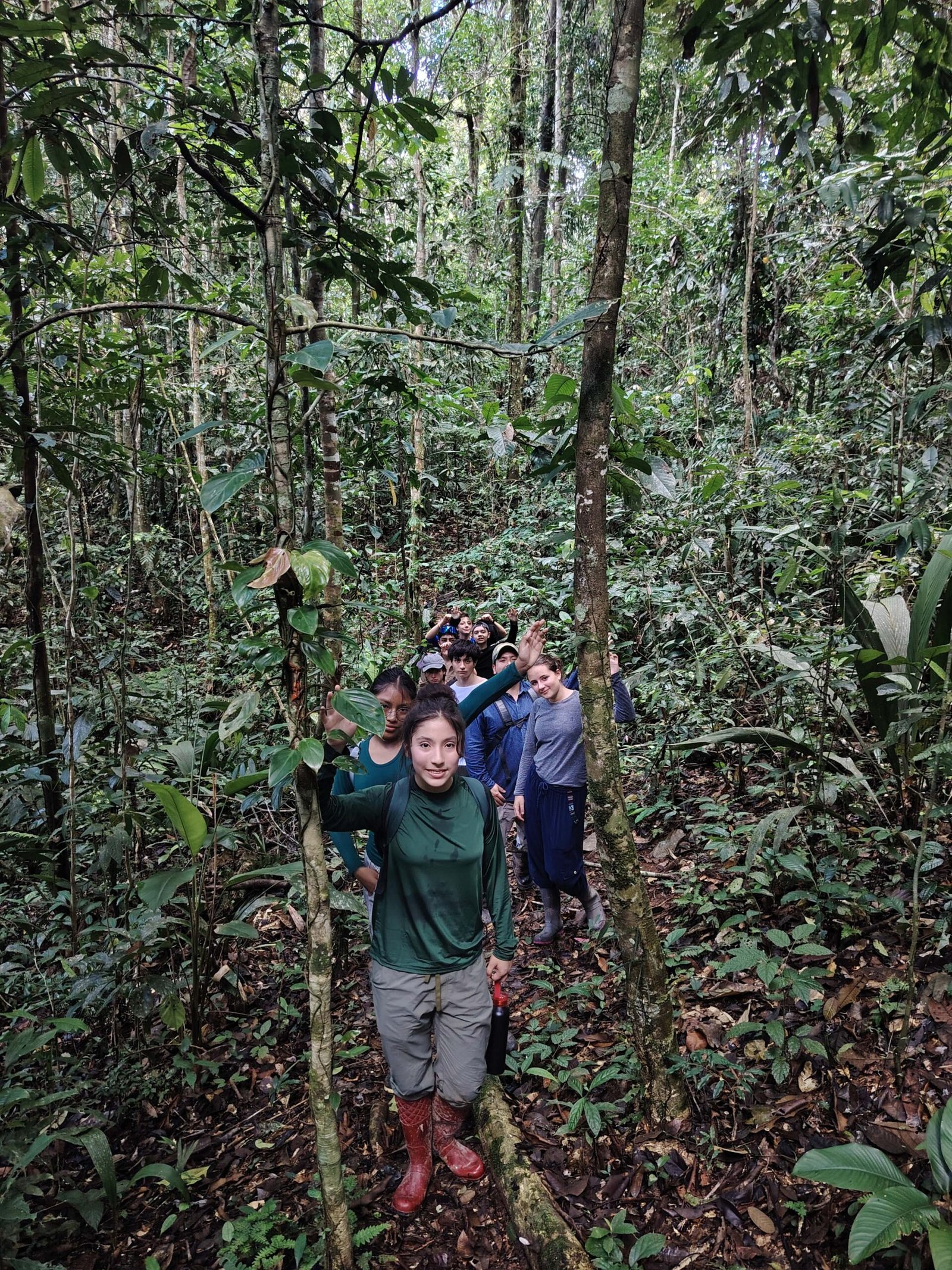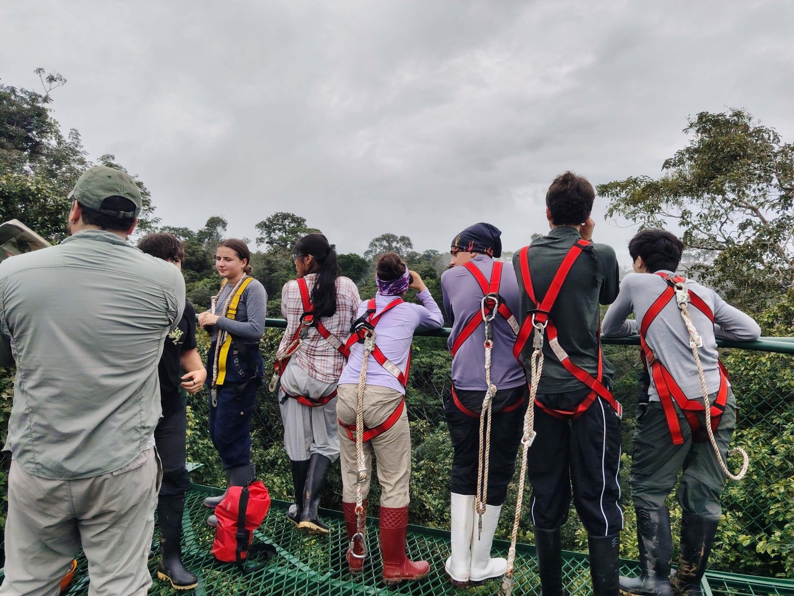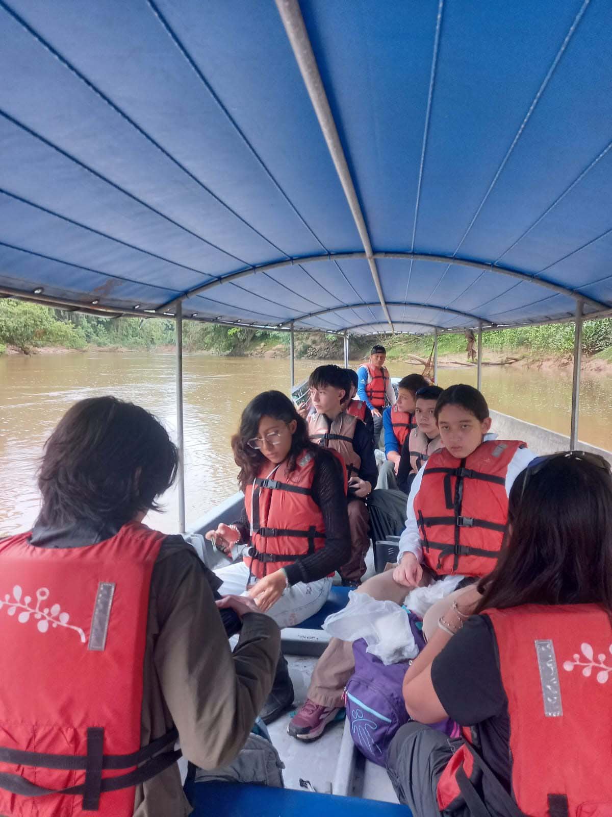 Au fil de leur séjour, les élèves ont exploré la biodiversité remarquable du Yasuní à travers différentes activités de terrain. Une navigation sur le fleuve Tiputini leur a permis d’observer des espèces emblématiques telles que les dauphins roses, ainsi que de nombreux groupes de singes, d’oiseaux et de poissons. Les randonnées en forêt les ont conduits jusqu’à une tour d’observation, d’où ils ont pu admirer des oiseaux, notamment des aras, et découvrir la richesse du monde des insectes.