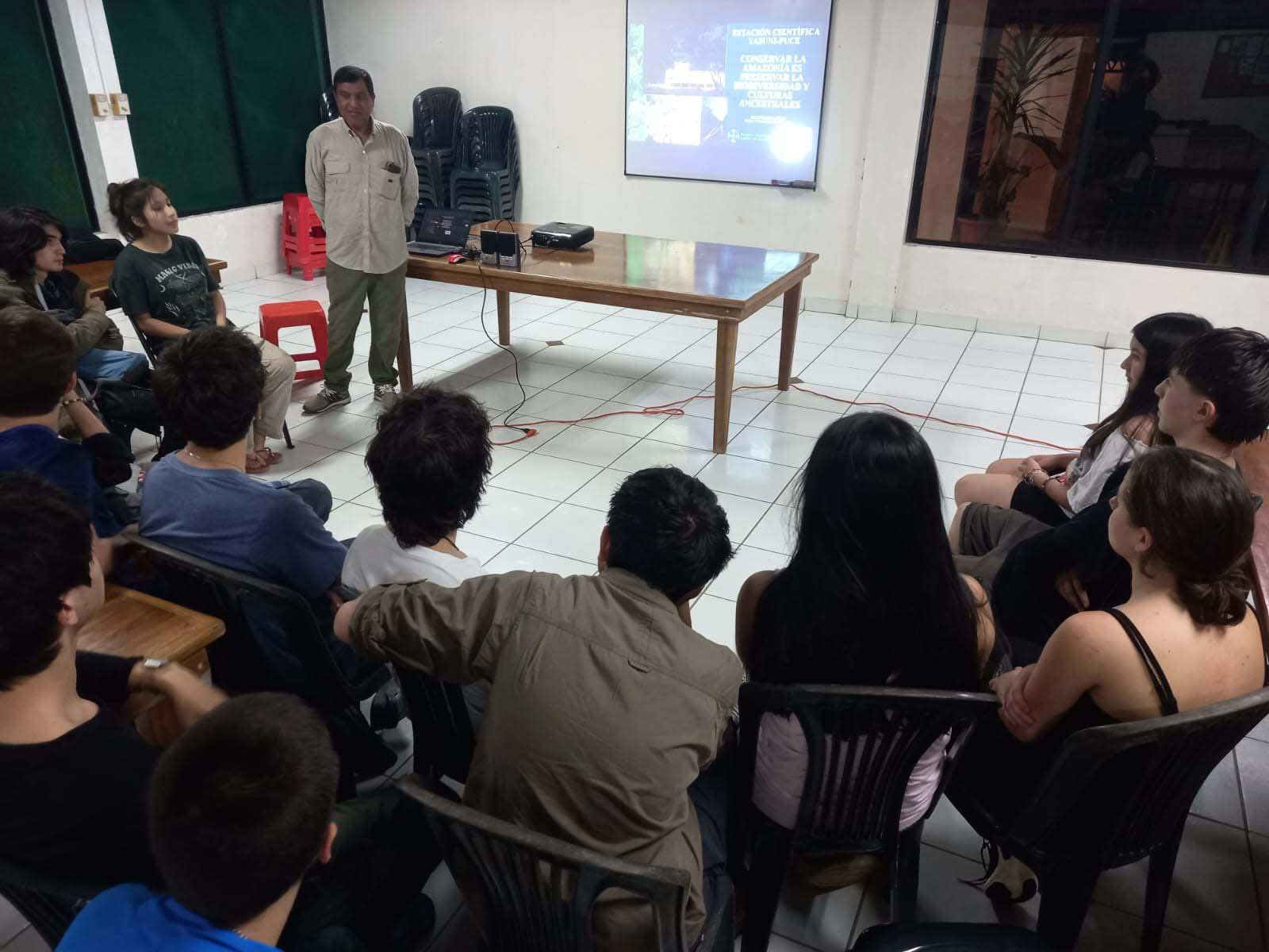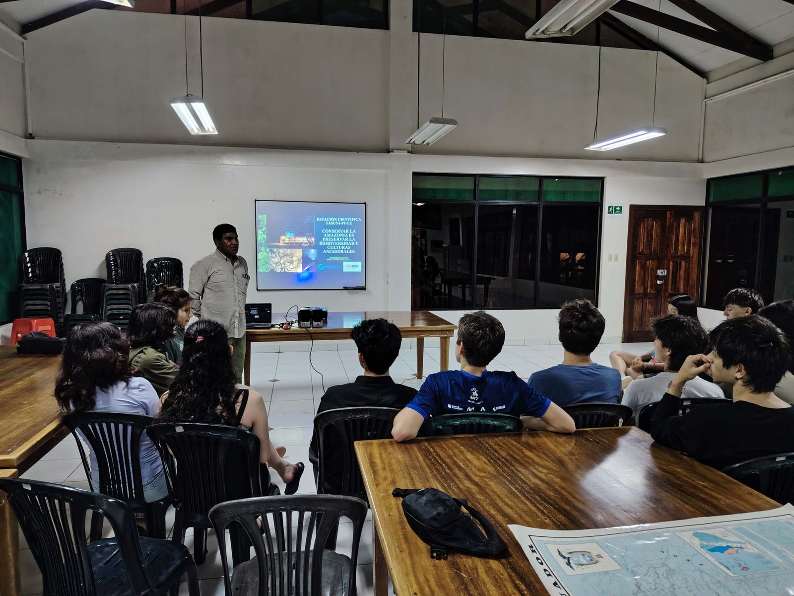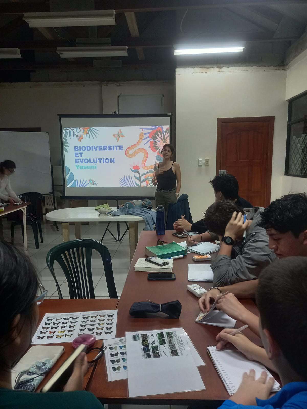 Sur le plan scientifique, les élèves ont visité la Station Scientifique Yasuní (ECY) de la PUCE, où ils ont été accueillis par son directeur. Ils ont aussi participé à une activité d’identification des oiseaux ainsi qu’à une conférence sur la faune du parc, animées par le biologiste Alejandro Saa, qui les a accompagnés tout au long du séjour.